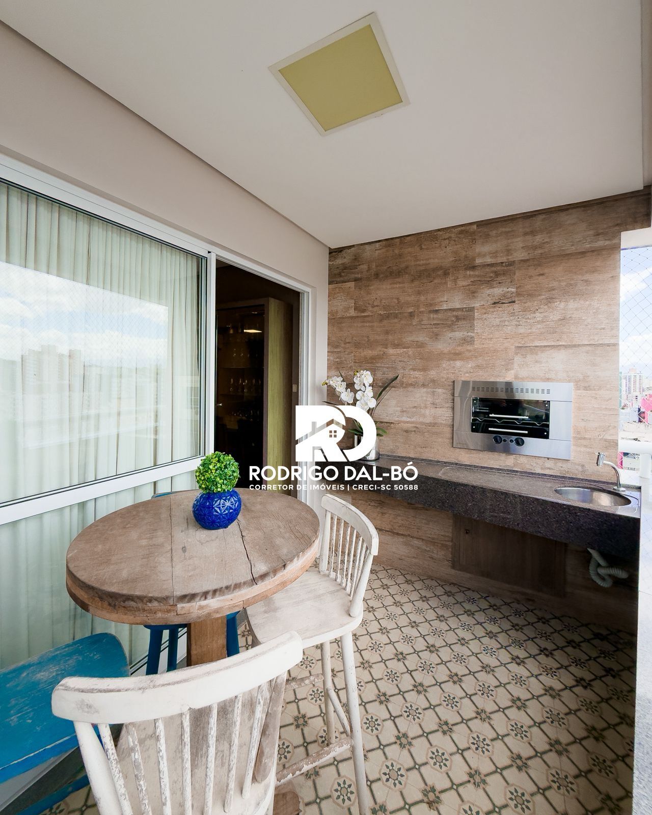 Conta com 3 dormitórios, sendo 1 suíte com closet e sacada, além de sacada com churrasqueira e vista para o Estádio Heriberto Hülse. Possui 2 vagas de garagem.